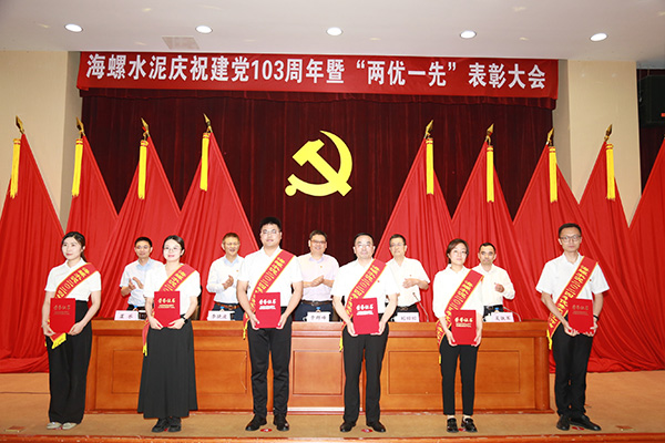 6月27日下午,海螺水泥以現(xiàn)場會(huì)+視頻會(huì)相結(jié)合的方式,召開了慶祝建黨103周年暨“兩優(yōu)一先”表彰大會(huì),隆重表彰了一批在推動(dòng)公司高質(zhì)量發(fā)展中涌現(xiàn)出的先進(jìn)集體和優(yōu)秀個(gè)人,激勵(lì)廣大黨員和干部職工堅(jiān)定信心、攻堅(jiān)克難,為完成年度目標(biāo)任務(wù),助推集團(tuán)實(shí)現(xiàn)新“雙一”目標(biāo)貢獻(xiàn)更大力量。