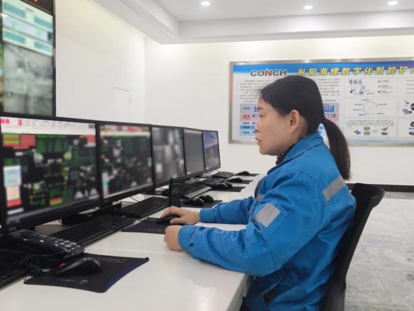 樅陽海螺礦山局控操作工胡玉貞正在進行礦車開采智能把控工作,她說:“數(shù)字化智能礦山系統(tǒng)指揮礦車,就像指揮家在指揮樂隊,工友們在礦場辛勤作業(yè),我用智能化系統(tǒng)為他們提供精準的開采指導(dǎo),確保每一步都高效有序。”