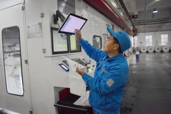 廣元塑品印刷機主操馬強正在核對生產(chǎn)數(shù)據(jù),他說:“這是生產(chǎn)源數(shù)據(jù),每一個數(shù)字都關(guān)乎著產(chǎn)品的質(zhì)量與生產(chǎn)流程的精準性,馬虎不得。”