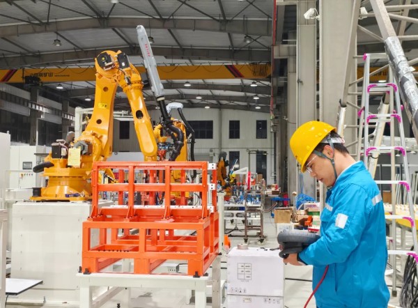 海螺中南機器人調(diào)試工程師朱露在廠房對工業(yè)機器人進行點位調(diào)試和程序測試,他說:“專業(yè)技能為矛,嚴謹態(tài)度為盾,作為一名科技工作者,在沖刺年度目標任務(wù)時要爭出“人生能有幾回搏”的決心和毅力。”