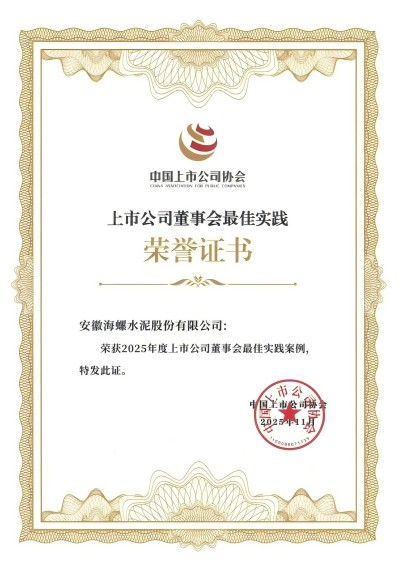 2025年11月18日,中國(guó)上市公司協(xié)會(huì)在北京召開(kāi)了第三屆理事會(huì)第六次會(huì)議和2025上市公司可持續(xù)發(fā)展大會(huì),大會(huì)舉行了“2025董事會(huì)最佳實(shí)踐案例”“2025可持續(xù)發(fā)展最佳實(shí)踐案例”發(fā)布儀式,海螺水泥同時(shí)榮獲“2025董事會(huì)最佳實(shí)踐案例”和“2025上市公司可持續(xù)發(fā)展最佳實(shí)踐案例”。