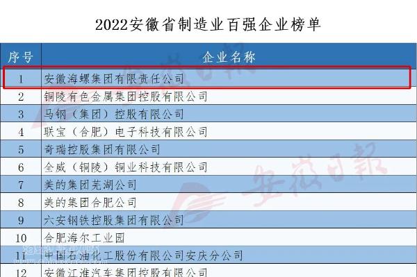 12月12日,安徽省企業(yè)聯(lián)合會、省企業(yè)家聯(lián)合會連續(xù)第18次發(fā)布“2022安徽百強企業(yè)”、“2022安徽制造業(yè)百強企業(yè)”、“2022安徽服務業(yè)百強企業(yè)”榜單。海螺集團名列“2022安徽百強企業(yè)”、“2022安徽制造業(yè)百強企業(yè)”兩項第一。