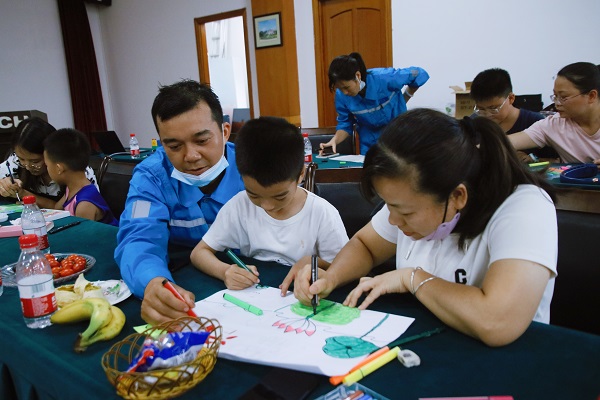 “我畫的這幅畫是《蓮》,它象征著清白、高潔,出淤泥而不染。”在介紹自己繪畫作品時,小朋友稚嫩而自信的聲音引來了陣陣掌聲,這是扶綏海螺開展的“清廉傳家”六一親子活動的場景。
