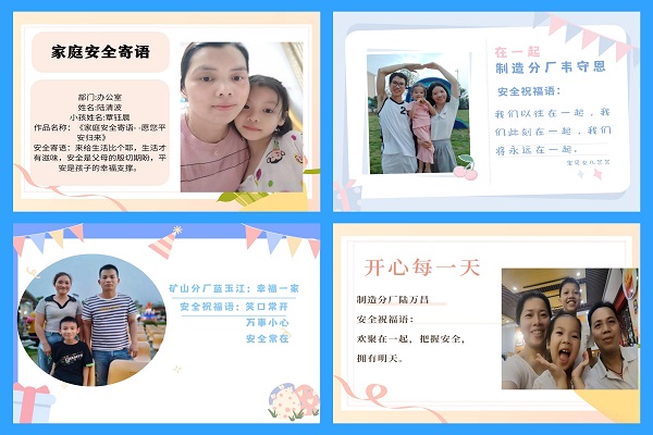 “笑口常開,萬事小心,安全常在?!边@是隆安海螺礦山分廠藍玉江收到的家庭安全寄語,寄語卡片上還有他們一家人的幸福合影。六一來臨之際,為了讓孩子們度過一個有意義的節(jié)日,同時也讓員工們時刻感受到來自家人對自己平安歸家的期待,隆安海螺開展了以“孩子們的笑容”為主題的親子合影活動。
