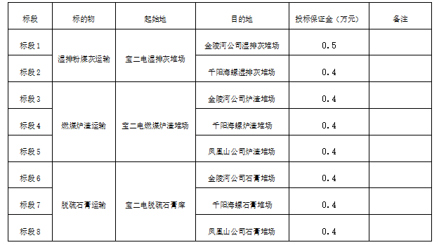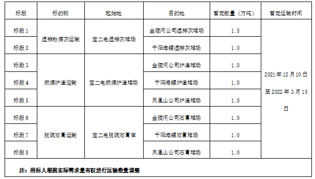 1.標(biāo)的物:寶雞二電廠濕排灰、燃煤爐渣及脫硫石膏運(yùn)輸。