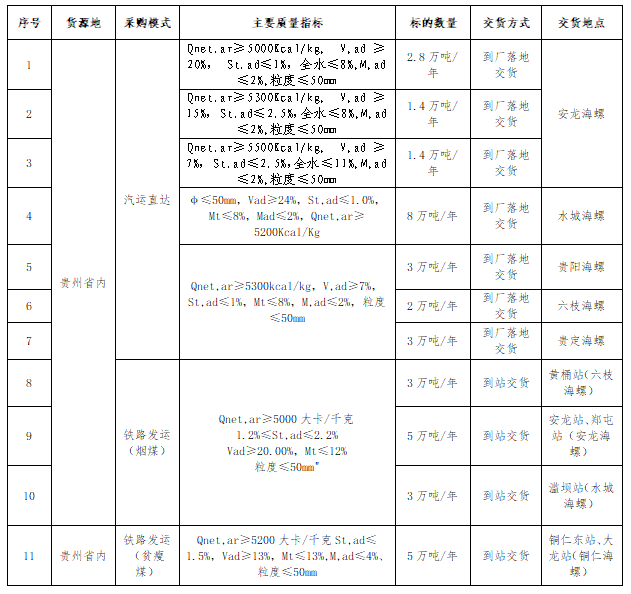 2.投標人所提供礦點煤炭生產(chǎn)能力30萬噸/年以上(含30萬噸/年),礦點屬于貴州省內(nèi)資源;