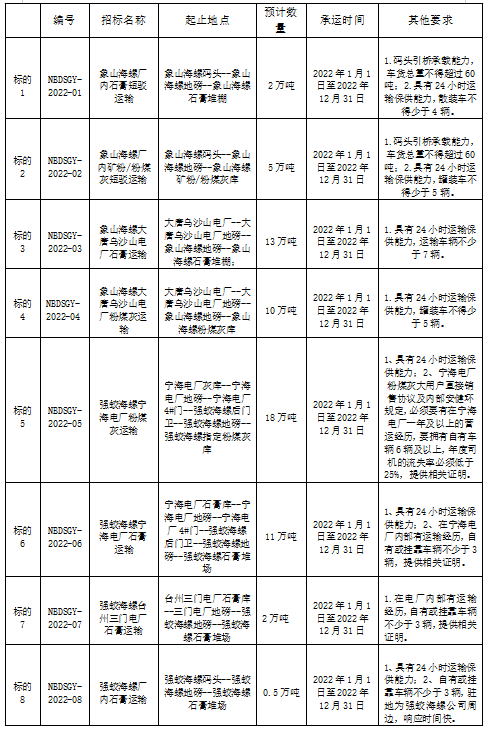 2、本次招標(biāo)活動要求投標(biāo)單位具有24小時(shí)運(yùn)輸保供能力,在以往運(yùn)輸過程中無不良記錄。投標(biāo)運(yùn)輸單位必須列出用于標(biāo)的原材料品種運(yùn)輸?shù)能囕v明細(xì)及載重噸位,且投標(biāo)單位列出的運(yùn)輸車輛不得與其他投標(biāo)單位重復(fù),招標(biāo)人有權(quán)要求投標(biāo)單位對其填報(bào)的運(yùn)輸工具事實(shí)予以進(jìn)一步澄清,否則取消其投標(biāo)資格。