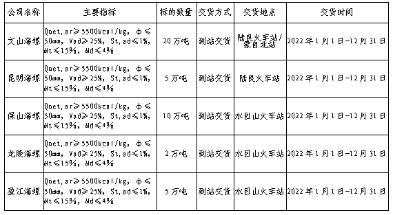 根據(jù)2022年區(qū)域內(nèi)五公司煤炭需求,為保障各公司生產(chǎn),保山海螺水泥有限責任公司擬對2022年直供煤炭采購進行公開招標,為體現(xiàn)公平、公正、公開的原則,同時為拓寬采購渠道,降低采購成本,現(xiàn)將招標相關(guān)事宜公告如下: