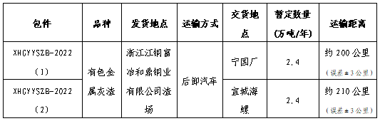 浙江江銅富冶和鼎銅業(yè)有限公司渣場至宣城海螺、寧國廠有色金屬灰渣運輸項目,年運量共計約4.8萬噸。