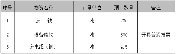 備注:回收商負(fù)責(zé)人工、氧氣、乙炔切割;自備吊車、叉車、鏟車、運(yùn)輸車輛、裝車、工具等;包含清理場地垃圾費(fèi)用。