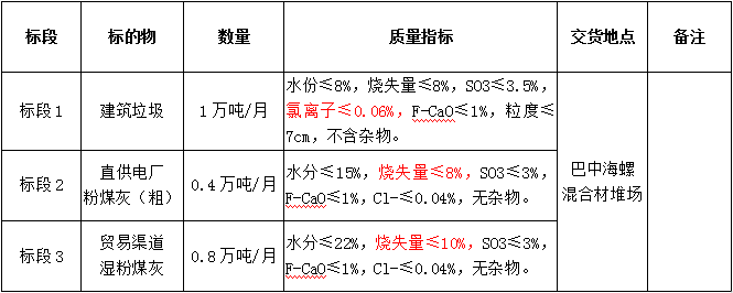 5.投標(biāo)報(bào)名單位需具有較強(qiáng)的保供能力,其中建筑垃圾月供貨能力不低于0.5萬噸;粉煤灰投標(biāo)渠道若為直供,不設(shè)置最低供貨量,若為貿(mào)易渠道,月供貨能力不低于0.3萬噸,且貿(mào)易渠道貨源不能為四川廣旺電力公司嘉川電廠、代池壩電廠和南江煤電公司粉煤灰資源。