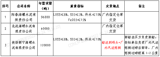根據(jù)招標(biāo)計(jì)劃安排由陽(yáng)春海螺牽頭開(kāi)展扶綏海螺、北流海螺和陽(yáng)春海螺三公司2022-2023年度云浮硅質(zhì)渣(硫鐵礦渣)聯(lián)合招標(biāo)采購(gòu)工作,為進(jìn)一步體現(xiàn)公平、公正、公開(kāi)的原則,現(xiàn)將招標(biāo)采購(gòu)信息發(fā)布如下:
