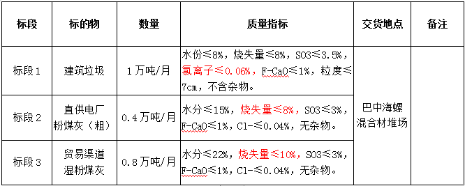 5.投標報名單位需具有較強的保供能力,其中建筑垃圾月供貨能力不低于0.5萬噸;粉煤灰投標渠道若為直供,不設置最低供貨量,若為貿(mào)易渠道,月供貨能力不低于0.3萬噸,且貿(mào)易渠道貨源不能為四川廣旺電力公司嘉川電廠、代池壩電廠和南江煤電公司粉煤灰資源。