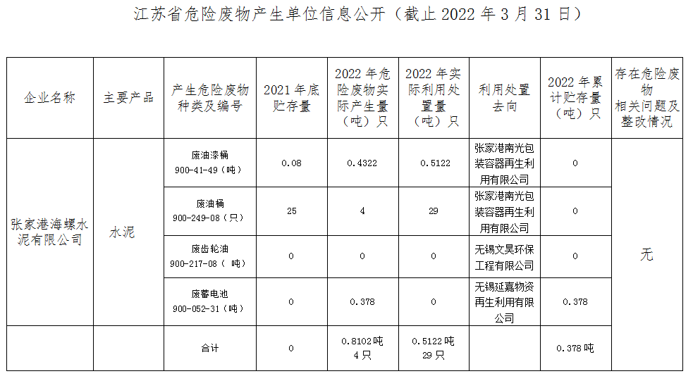 江蘇省危險廢物產(chǎn)生單位信息公開(截止2022年3月31日)