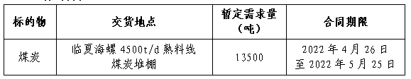 為做好我公司2022年5月份煤炭采購工作,滿足生產(chǎn)需要,本著“公開、公平、公正”的原則,擬對(duì)煤炭貿(mào)易渠道供貨進(jìn)行公開招標(biāo),現(xiàn)將招標(biāo)采購信息發(fā)布如下: