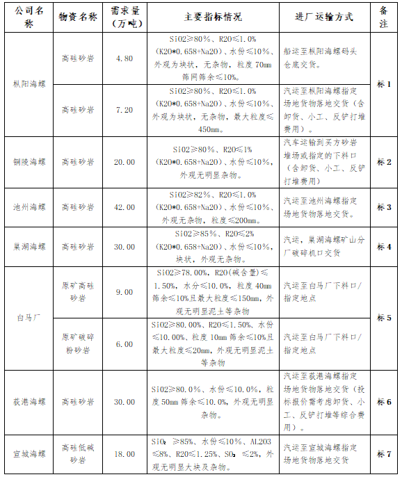 4.為防止串貨,同一貨源地,單一海螺子公司只選取一家投標單位中標。考慮直供合作,本次招標不接受已參加各需求公司砂巖直供礦點招標(通過資質評審的)或已在合作的直供渠道參與投標(含貨源地為該直供渠道的流通渠道)。同時不接受貨源地為安徽佰金礦業(yè)有限公司等直供礦點的非直供渠道前來投標。