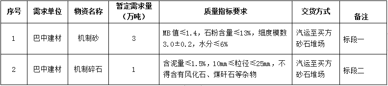 此次砂石招標(biāo)以到廠價格性價比最優(yōu)評定中標(biāo)渠道。
