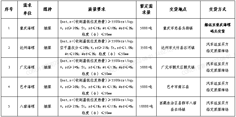 為進(jìn)一步提升煤炭采購招標(biāo)的公平、公正、公開透明性,根據(jù)區(qū)域2022年8月份煤炭需求,現(xiàn)組織開展煤炭采購網(wǎng)絡(luò)招標(biāo),特將招標(biāo)事宜公告如下: