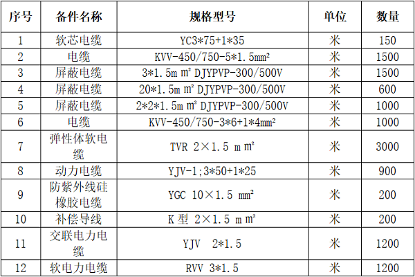 1.招標(biāo)物資名稱:電纜。