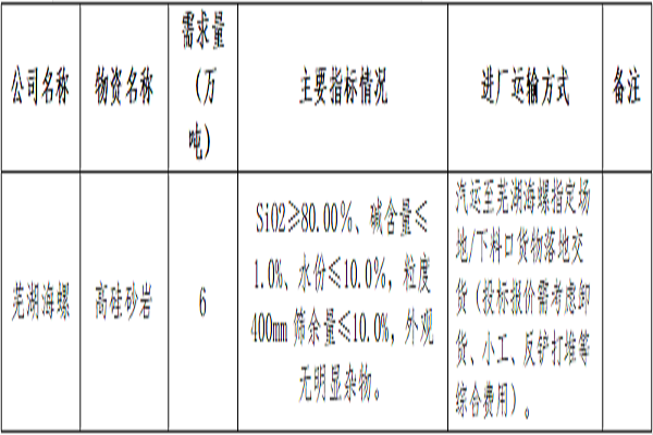 根據生產需求,本著“公開、公平、公正”的原則,蕪湖海螺供應處擬對外購砂巖進行公開招標,歡迎具備條件的單位參加,現將招標相關事宜公告如下: