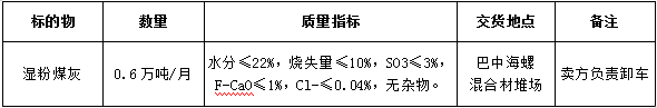 根據(jù)巴中海螺生產經(jīng)營需求,現(xiàn)對水泥生產用濕粉煤灰采購業(yè)務進行公開招標,為體現(xiàn)公平、公正、公開、透明的原則,現(xiàn)將招標相關事宜公告如下: