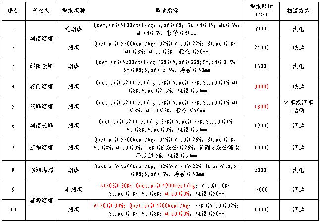 根據(jù)2022年11月21日-2022年12月20日海螺水泥湖南區(qū)域各子公司煤炭需求,現(xiàn)擬對煤炭進行公開招標,選定中標人,為體現(xiàn)公平、公正、公開的原則,拓寬采購渠道,現(xiàn)將招標相關(guān)事宜公告如下: