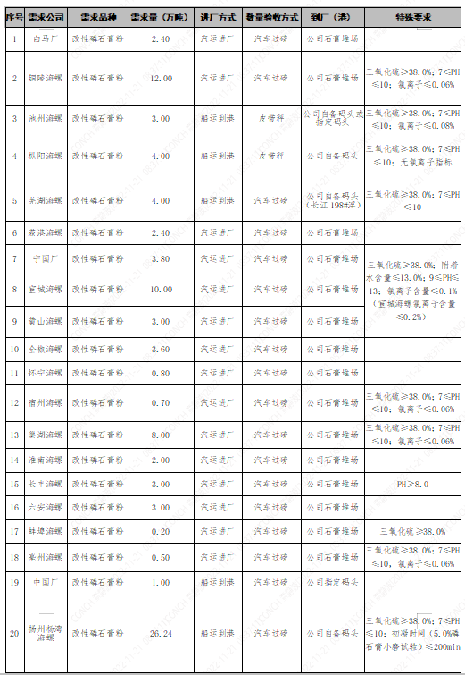 根據(jù)海螺水泥各公司生產(chǎn)經(jīng)營計劃,安徽銅陵海螺水泥有限公司聯(lián)合華東及中部地區(qū)部分公司對改性磷石膏粉、原狀酸性磷石膏粉進行聯(lián)合招標,為進一步體現(xiàn)公平、公正、公開的原則,拓寬采購渠道,提高采購質(zhì)量,現(xiàn)將招標采購信息發(fā)布如下: