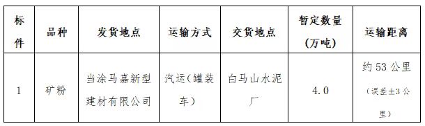 2.標(biāo)段運輸起止:當(dāng)涂馬嘉新型建材有限公司礦粉發(fā)運點至白馬山水泥廠指定卸貨地點。