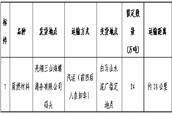 注:具體承運數(shù)量及運距以實際業(yè)務發(fā)生為準,招標單位可根據(jù)生產(chǎn)實際情況調(diào)整運輸量。