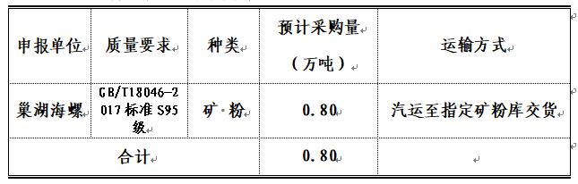 2.交貨地點(diǎn):巢湖海螺指定礦粉庫(kù)。