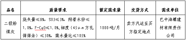 為進一步提升二級粉煤灰采購招標的公平、公正、公開透明性,根據(jù)巴中海螺建材2023年度二級粉煤灰需求,現(xiàn)組織開展二級粉煤灰公開招標,特將招標事宜公告如下:
