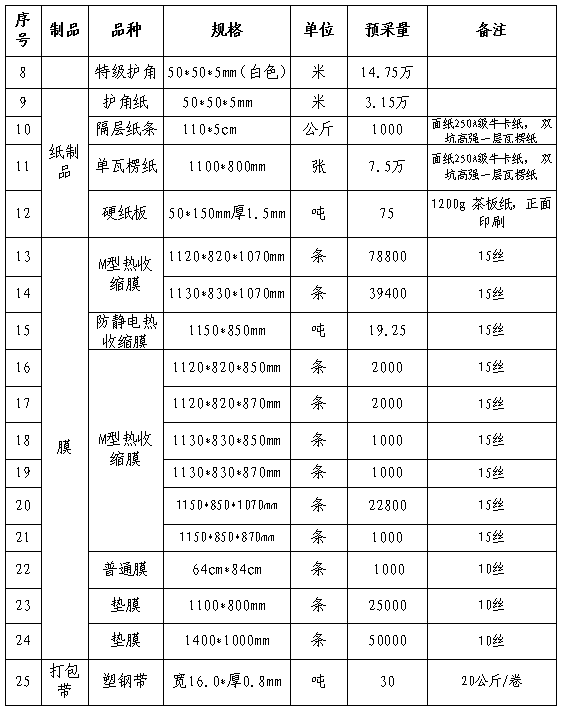 根據(jù)公司生產(chǎn)經(jīng)營計(jì)劃,為確保2023-2024年度產(chǎn)品包裝需求;現(xiàn)本著“公開、公平、公正、透明”的原則公開招標(biāo),誠邀經(jīng)營能力較好、產(chǎn)品質(zhì)量合格、保供和服務(wù)能力較強(qiáng)的包裝材料生產(chǎn)單位參加投標(biāo),現(xiàn)將有關(guān)事項(xiàng)公告如下: