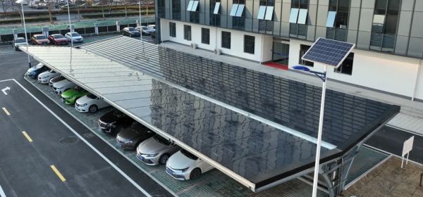 使用平面光伏瓦鋪設的停車棚頂
