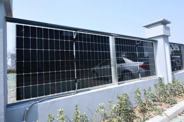 全透光光伏幕墻組成的廠區(qū)圍墻柵欄