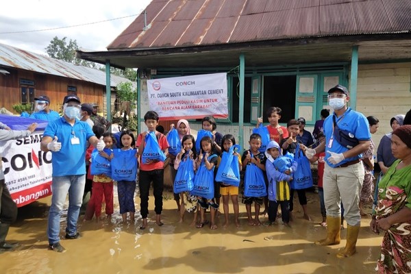 2021年1月28日,南加海螺為當(dāng)?shù)厥芎闉?zāi)影響村民送去慰問(wèn)品