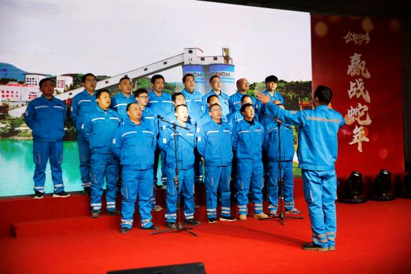 隨著晚會的正式開始,礦山分廠合唱團穿著海螺服,精神抖擻的走上舞臺,用堅定的歌聲唱響《團結(jié)就是力量》,體現(xiàn)了他們團結(jié)協(xié)作、勇往直前的精神風貌。