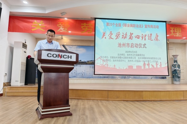 今年4月25日至5月1日是第23個(gè)全國(guó)《職業(yè)病防治法》宣傳周,本次活動(dòng)的主題是“關(guān)愛(ài)勞動(dòng)者心理健康”。為全面貫徹黨中央、國(guó)務(wù)院關(guān)于加強(qiáng)職業(yè)病防治工作的決策部署,持續(xù)推進(jìn)職業(yè)病防治工作,切實(shí)保障廣大勞動(dòng)者職業(yè)健康權(quán)益,2025年4月25日上午9:00,池州市《職業(yè)病防治法》宣傳周活動(dòng)啟動(dòng)儀式在池州海螺會(huì)議室舉行。