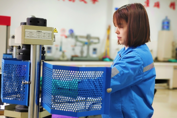 生產(chǎn)品質(zhì)處物檢組長仁桃正在進行水泥膠砂強度破型,她說道:“破掉的是試塊,撐起的是達州海螺水泥質(zhì)量的口碑。”(沈雪蓮/攝)