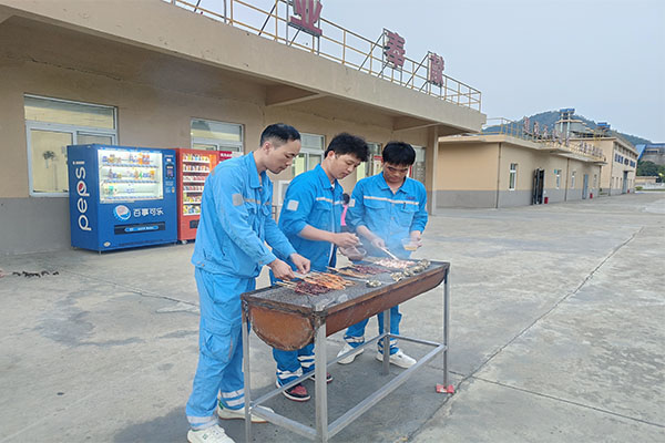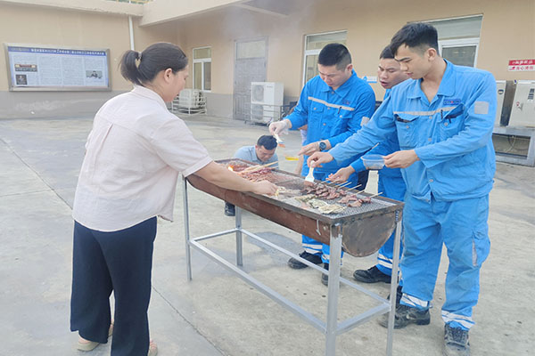 當(dāng)體育競技的激情慢慢消散,一場溫馨的煙火氣為活動增添了別樣的溫情。4月29日晚,本次活動的壓軸環(huán)節(jié)職工自助燒烤盛宴在廣英水泥食堂廣場溫馨開啟。辦公室提前備足食材,精心布置場地,職工及家屬圍坐燒烤架旁,親手烤制美食,共享勞動成果?,F(xiàn)場香氣四溢,歡聲笑語不斷,職工們暢談工作與生活,氛圍輕松融洽。活動還特別為參與者準(zhǔn)備了飲料、水果及零食,為節(jié)日增添了一份甜蜜與溫情。
