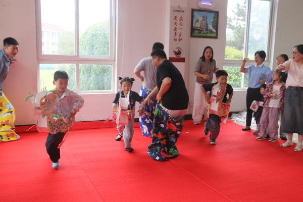 六一兒童節(jié)專屬的趣味游戲區(qū)同樣熱鬧非凡?!按笕舜筇?兒童劃龍船”游戲前,孩子們排著整齊隊(duì)伍,大聲呼叫,為爸爸媽媽加油打氣,“爸爸,快點(diǎn)跳,有人要追上你了……”“媽媽,加油,你是最厲害的……”, 爸爸媽媽們聽到孩子們的吶喊,牟足了勁往前跳,孩子們接棒成功后,飛快的跑了出去,贏得了周圍的小伙伴們陣陣歡呼。家長和孩子們默契配合,完成挑戰(zhàn),在游戲中增進(jìn)了親子感情。