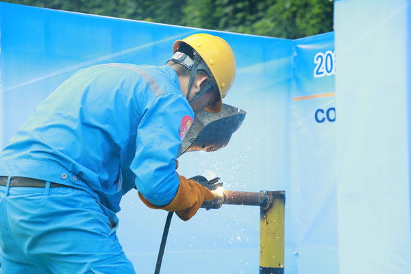 焊接與氧割操作賽區(qū),弧光閃爍,焊花四濺。選手們全神貫注,手持焊槍,穩(wěn)穩(wěn)地對(duì)準(zhǔn)工件接口。面罩下,是他銳利而專注的眼神。這不僅是力量與技巧的結(jié)合,更是耐心與經(jīng)驗(yàn)的沉淀,每一朵焊花都在雕琢著“鋼鐵裁縫”追求極致的匠心。