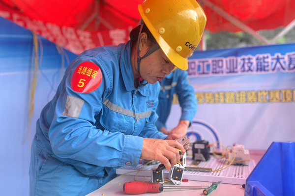 電氣線路組裝賽場(chǎng),看似平靜卻充滿了緊張的氣息。選手們面對(duì)復(fù)雜的電氣元件和線路圖,沉著冷靜。一位電工手指翻飛,剝線、接線、固定,動(dòng)作行云流水。紅、綠、黃各色導(dǎo)線在手中仿佛被賦予了生命,精準(zhǔn)地連接在接觸器、繼電器和端子之間。