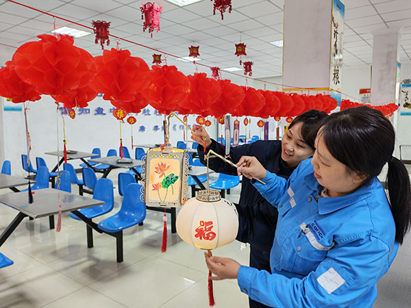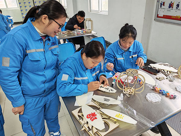 DIY花燈洋溢著溫情與創(chuàng)意。大家積極踴躍地動手,相互協(xié)作,開展裁剪、粘貼、裝飾等工作,忙得不亦樂乎。大家盡情發(fā)揮想象力,將廉潔元素與安全元素融入到花燈設(shè)計之中,“清廉燈”“平安燈”等一盞盞獨具匠心的花燈相繼誕生。燈籠上“?!薄傲薄鞍病薄叭钡茸謽屿陟谏x,蓮花圖案、安全標(biāo)語栩栩如生。親手制作花燈的過程,不僅讓員工領(lǐng)略了傳統(tǒng)手工藝的魅力,更讓廉潔清風(fēng)、安全理念通過指尖傳遞,深入每一位員工的內(nèi)心。